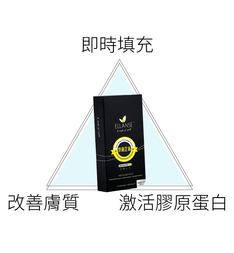 ELLANSE 少女針不同於傳統填充劑僅提供暫時性體積補充,並具有雙重效果,CMC凝膠能夠立即填充,而 PCL微型晶球可以刺激自體第一型膠原蛋白再生,加上拉提塑形效果,提供「三合一」功效,能填充凹陷位置,達致豐盈飽滿、提拉去皺、使面部線條更加完美。